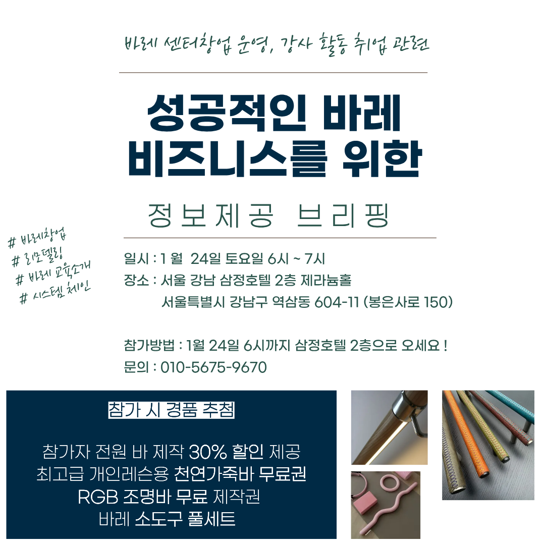 We have launched the very first Barre business in South Korea, and we will pursue successful ventures together with everyone who aspires to join the Barre industry.
