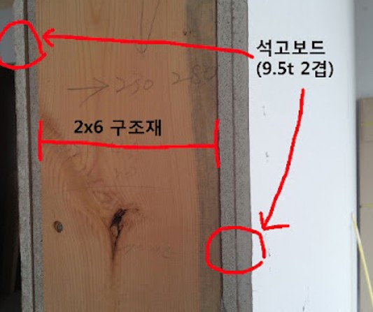 벽면이 경량 칸막이일 경우 공간 전체를 합판으로 보강해야 합니다.