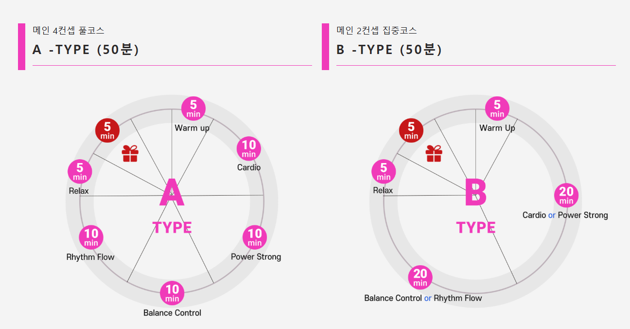 바디톤, 카디오, 활력 프로그램 등 다양한 루틴 수행